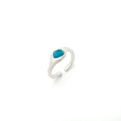 Each ring is mounted according to the unique shape of the semi-precious stone.