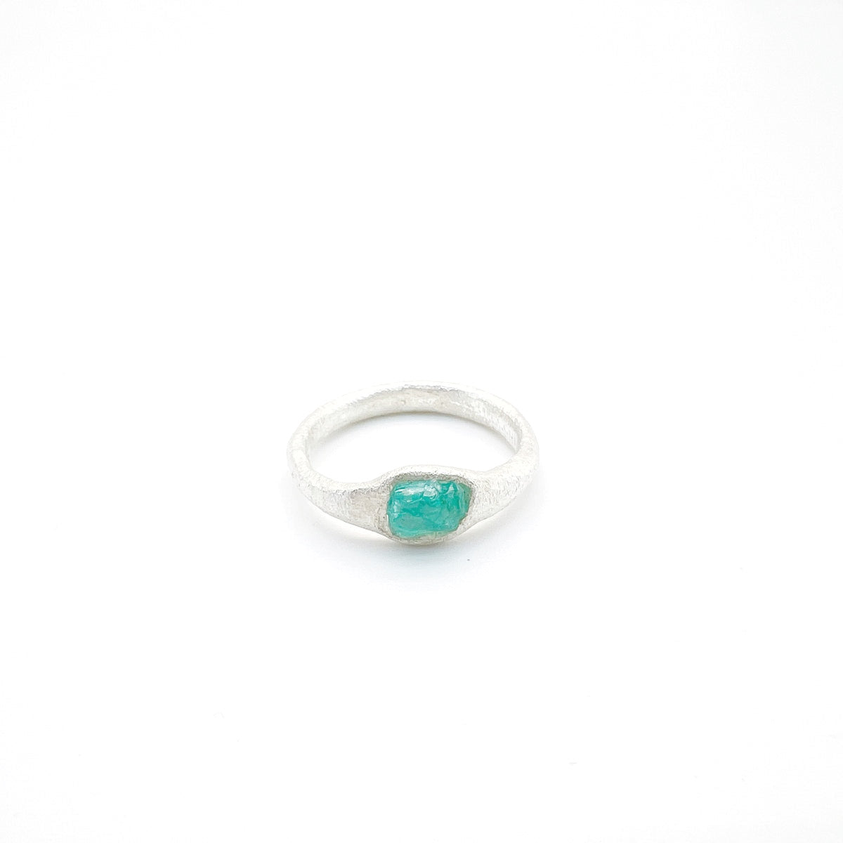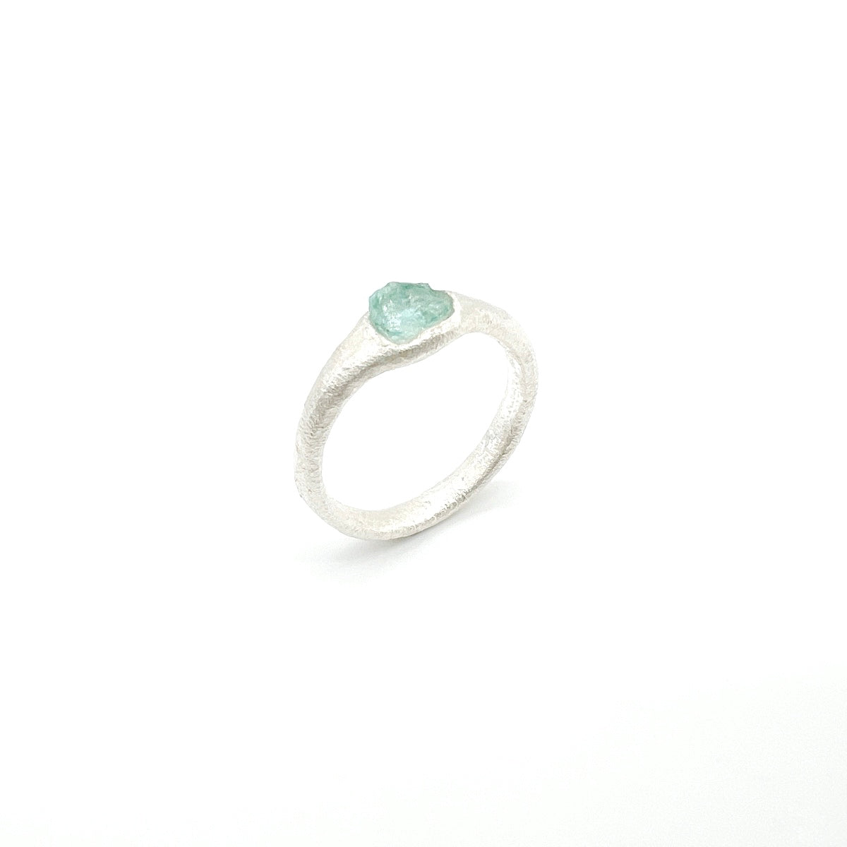Each ring is mounted according to the unique shape of the semi-precious stone.